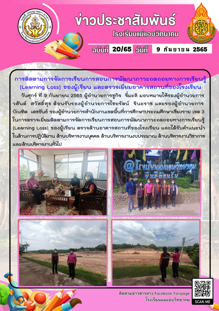 การติดตามการจัดการเรียนการสอนการพัฒนาภาวะถดถอยทางการเรียนรู้ (Learning Loss) ของผู้เรียน และตรวจเยี่ยมอาคารสถานที่ของโรงเรียน