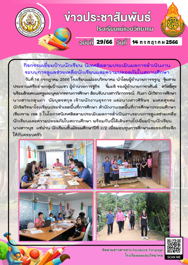 การนิเทศติดตามมาตรการสถานศึกษาปลอดภัยและติดตามการเยี่ยมบ้านนักเรียนของเขตพื้นที่การศึกษาเชียงราย เขต 3