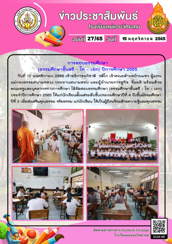 การสอบธรรมศึกษา (ธรรมศึกษาชั้นตรี – โท – เอก) ปีการศึกษา 2565