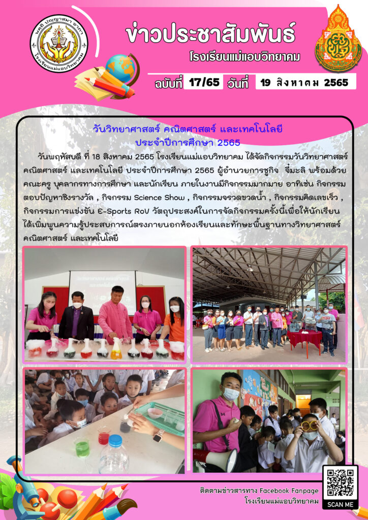 กิจกรรมวันวิทยาศาสตร์ คณิตศาสตร์ และเทคโนโลยี ประจำปีการศึกษา 2565