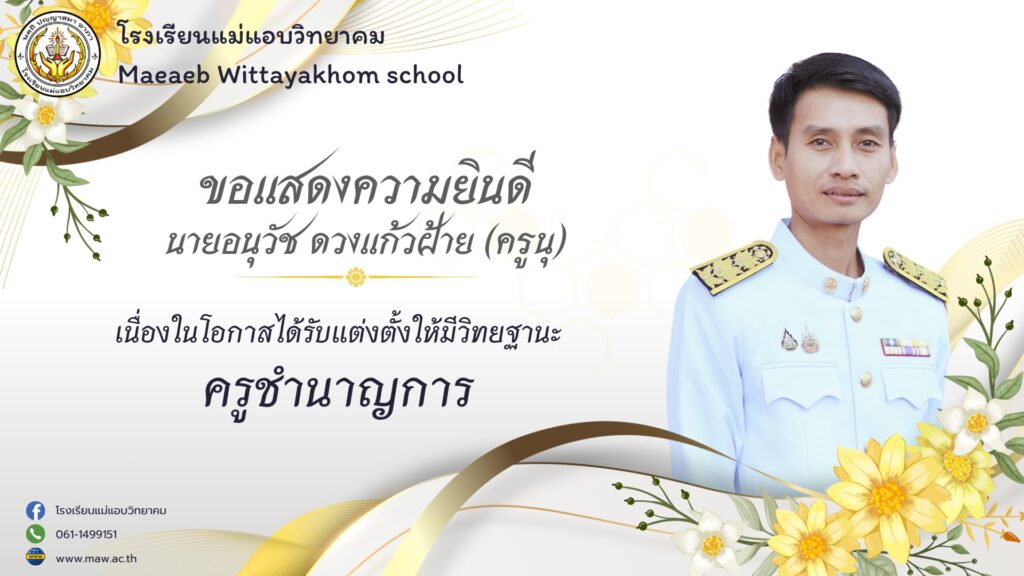 ขอแสดงความยินดี กับ คุณครูอนุวัช ดวงแก้วฝ้าย (ครูนุ) เนื่องในโอกาสได้รับแต่งตั้งให้มีวิทยฐานะ ครูชำนาญการ