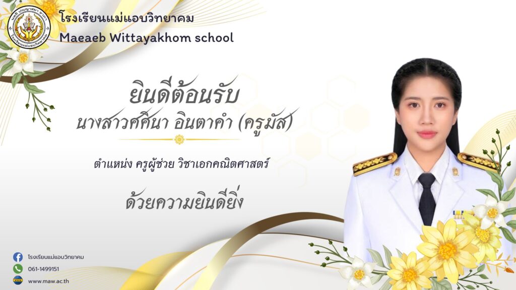 ประชาสัมพันธ์ ยินดีต้อนรับบุคลากรใหม่ สู่รั้วชมพู-ดำ 16 มิถุนายน 202523 มิถุนายน 2025 Maeaeb Wit นางสาวศศินา อินตาคำ (ครูมัส) ครูผู้ช่วยวิชาเอกคณิตศาสตร์ https://www.facebook.com/maeaebsc/posts/pfbid02nDicTMevGRyaSfhQ7aMGBfUBPKgkY9Z7BKPddKe8jP9d5PxT3xzZNrmzguNT7bwHl
