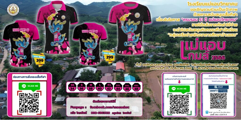 เชิญชวนร่วมเป็นเจ้าภาพด้วยการสนับสนุนเสื้อกีฬา เนื่องในโอกาส “ครบรอบ 51 ปี แม่แอบวิทยาคม”