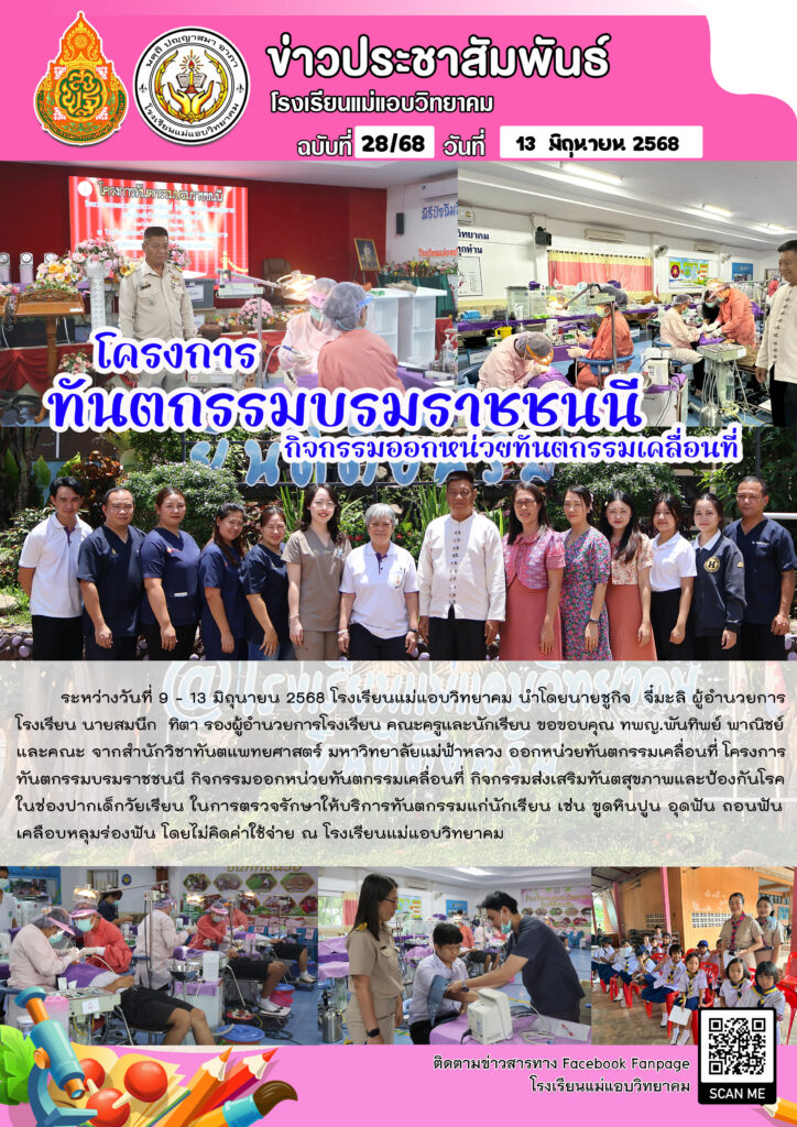 โครงการทันตกรรมบรมราชชนนี กิจกรรมออกหน่วยทันตกรรมเคลื่อนที่ กิจกรรมส่งเสริมทันตสุขภาพและป้องกันโรคในช่องปากเด็กวัยเรียน