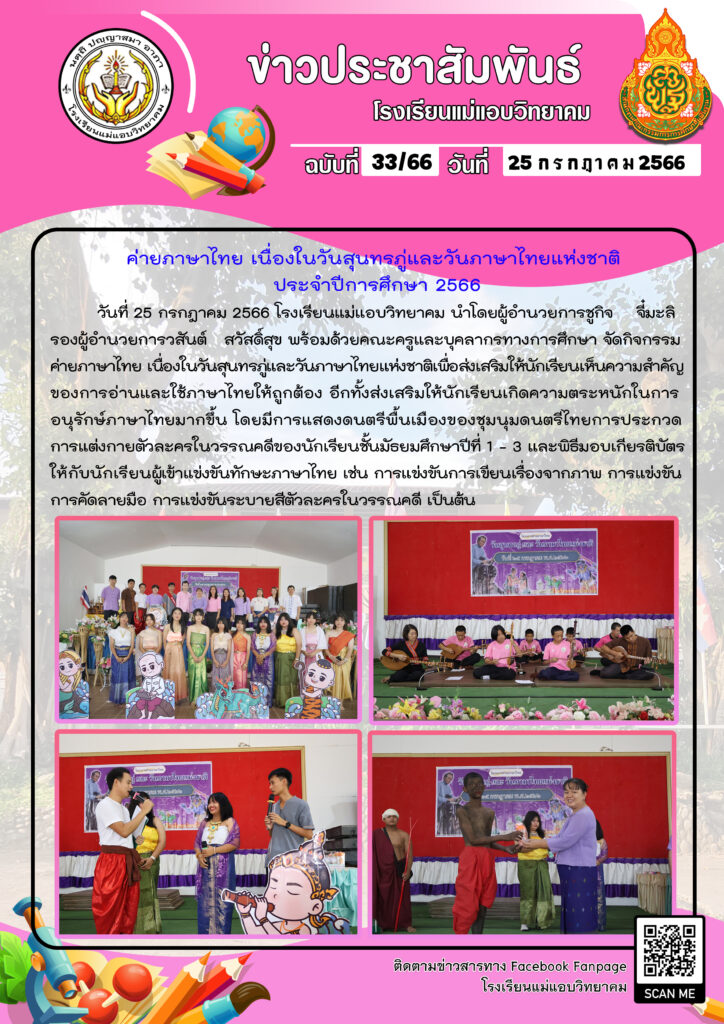 ค่ายภาษาไทย เนื่องในวันสุนทรภู่และวันภาษาไทยแห่งชาติ ประจำปีการศึกษา 2566