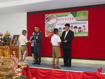 มอบเกียรติบัตรให้แก่นักเรียนโรงเรียนแม่แอบวิทยาคม ที่ได้เข้าร่วมโครงการ และผ่านหลักสูตร D.A.R.E ประเทศไทย
