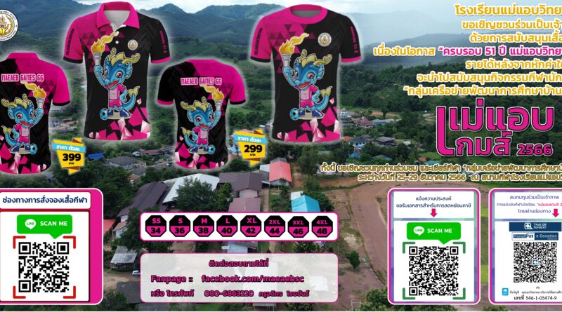 เชิญชวนร่วมเป็นเจ้าภาพด้วยการสนับสนุนเสื้อกีฬา เนื่องในโอกาส “ครบรอบ 51 ปี แม่แอบวิทยาคม”